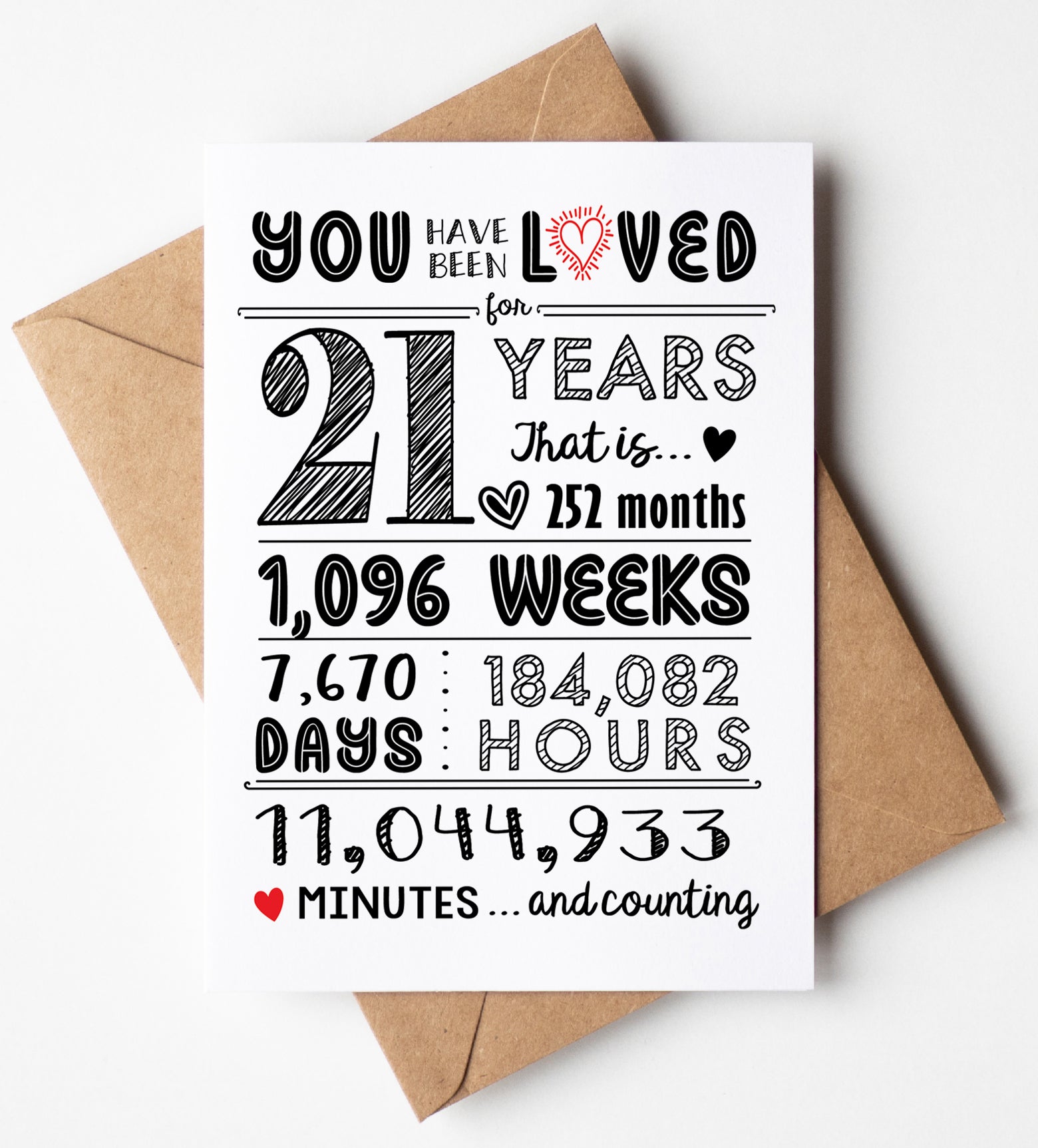 21st Birthday Card (21 Years Loved) with Envelope