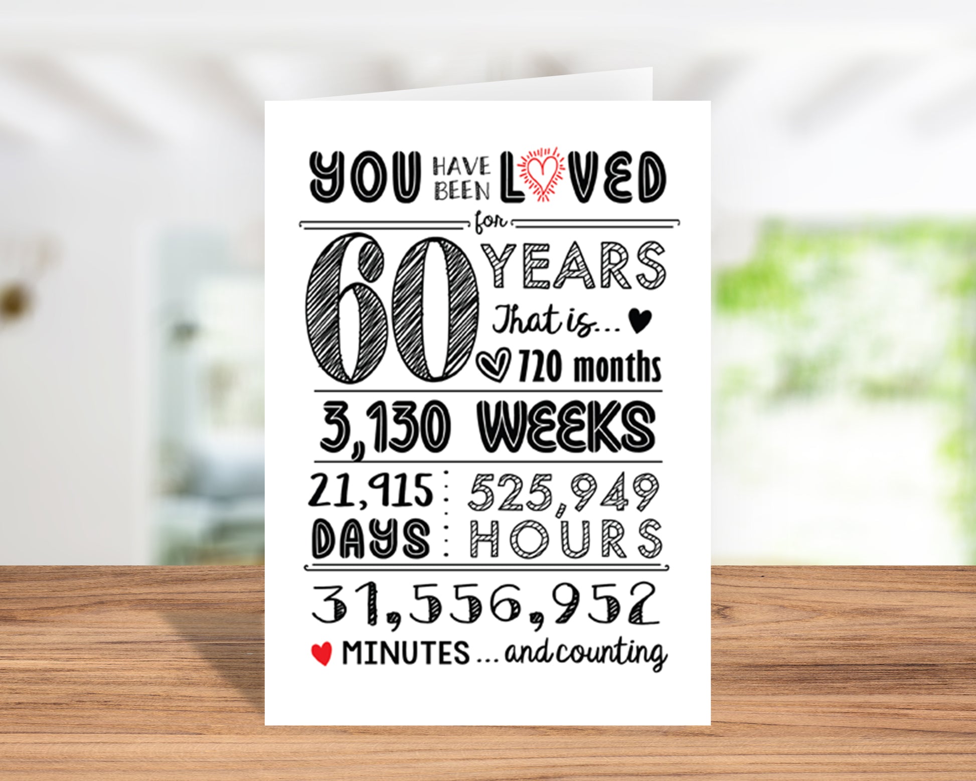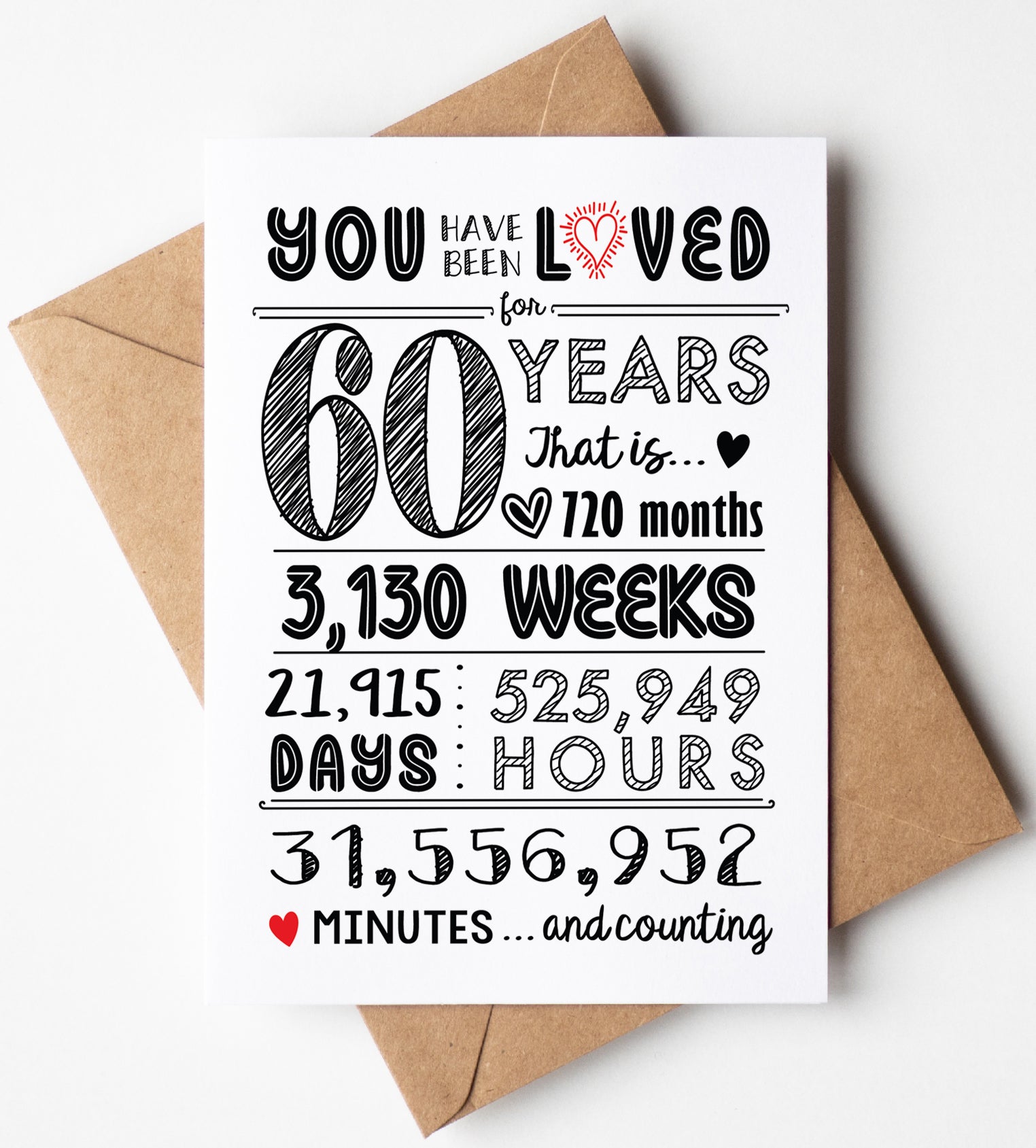 Our one-of-a-kind pop art-style 60th birthday card or 60th anniversary card is a thoughtful and unique gift, perfect for 60th birthday gifts, anniversaries, or decorations. The 5x7 inch card features memorable facts about the year of birth or anniversary, and comes with a trendy kraft envelope. Add a special touch to the event with this unique, personalized card. Designed and made in the USA by Katie Doodle.