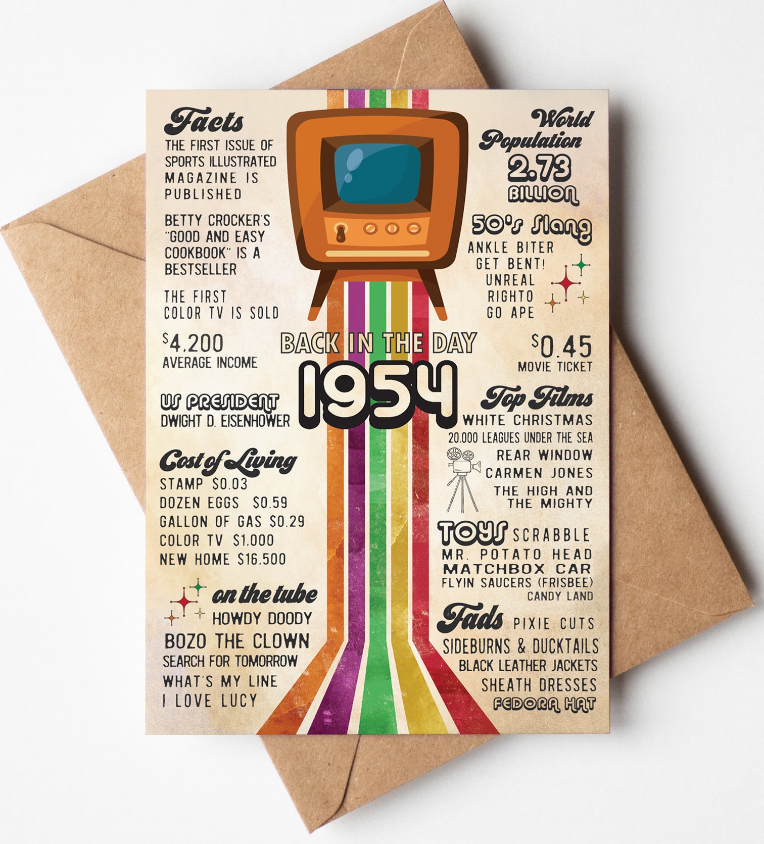 70th Birthday Card (Back-in 1954) with Envelope